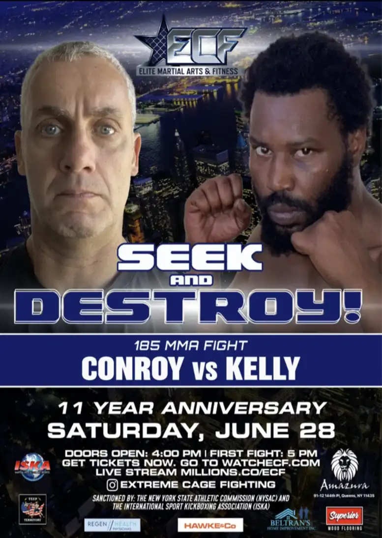 Lifetime Fitness in Florham Park is graciously and generously allowing members, guests, and employees to view Martin Conroy’s amateur MMA fight on Saturday, 28 June 2025.